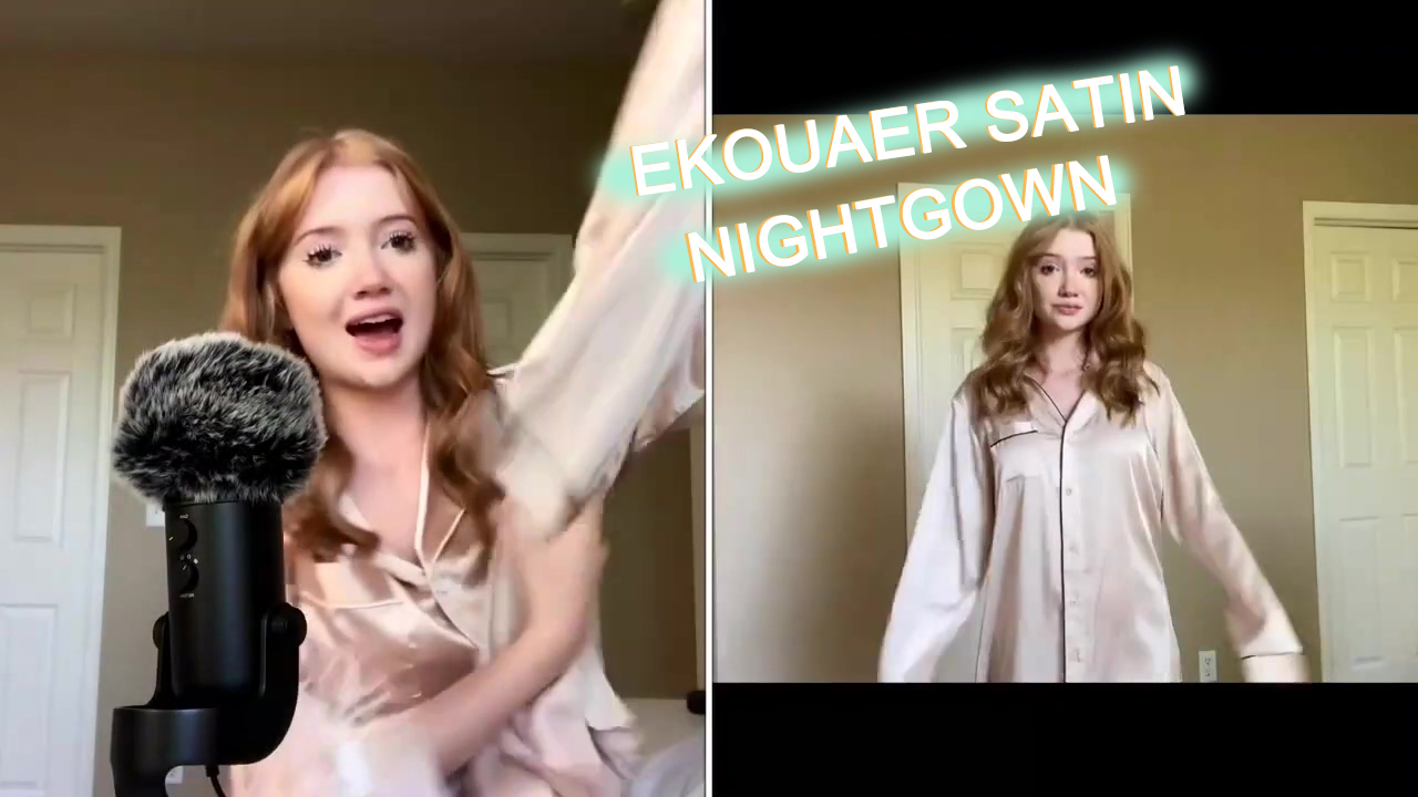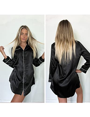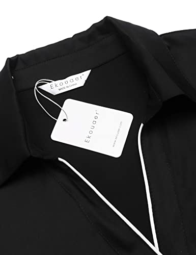 Ekouaer Women s Long Sleeve Satin Sleepshirt Button Down Nightgowns Silk Nightshirt Pajama Top Sleepwear S-XXL